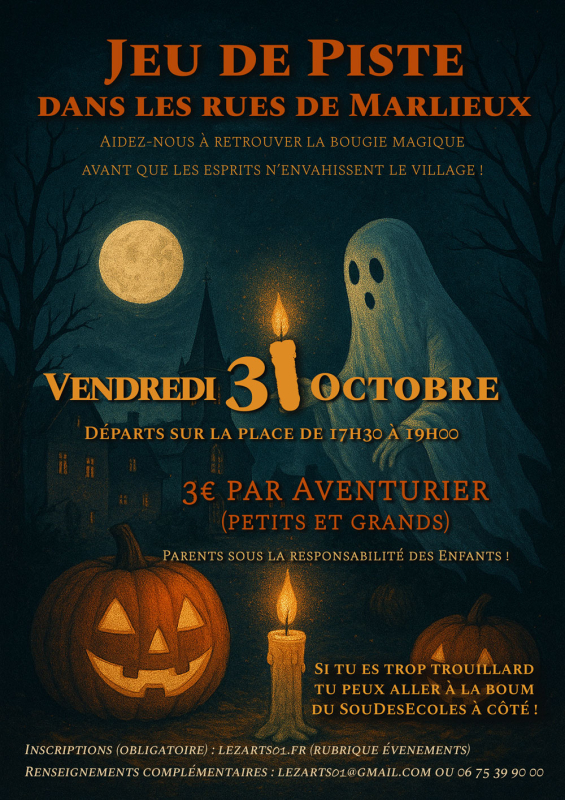 Chaque année lors de la veillée d'Halloween à Marlieux, on allume une bougie magique dans une citrouille pour éloigner les mauvais esprits. Mais, ce soir, la bougie de la citrouille s'est mystérieusement volatilisée... Aidez-nous à la retrouver, la rallumer et la remettre dans la citrouille avant que les esprits n'envahissent le village !