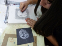 Les cours de dessin ont repris au mois de septembre. Les élèves de l'année dernière continuent leur progression, toujours à l'aide de la méthode de Betty Edouards, la "bible" de la prof ! Ils se sont attaqués depuis 2 mois au dessin "négatif" : on teinte le papier et on dessine avec la gomme... les progressions sont indiscutables !