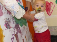 Mais pas de souci, la peinture peut être mise à la bouche sans que cela soit dangereux pour bébé ! L'atelier en photos c'est mieux :